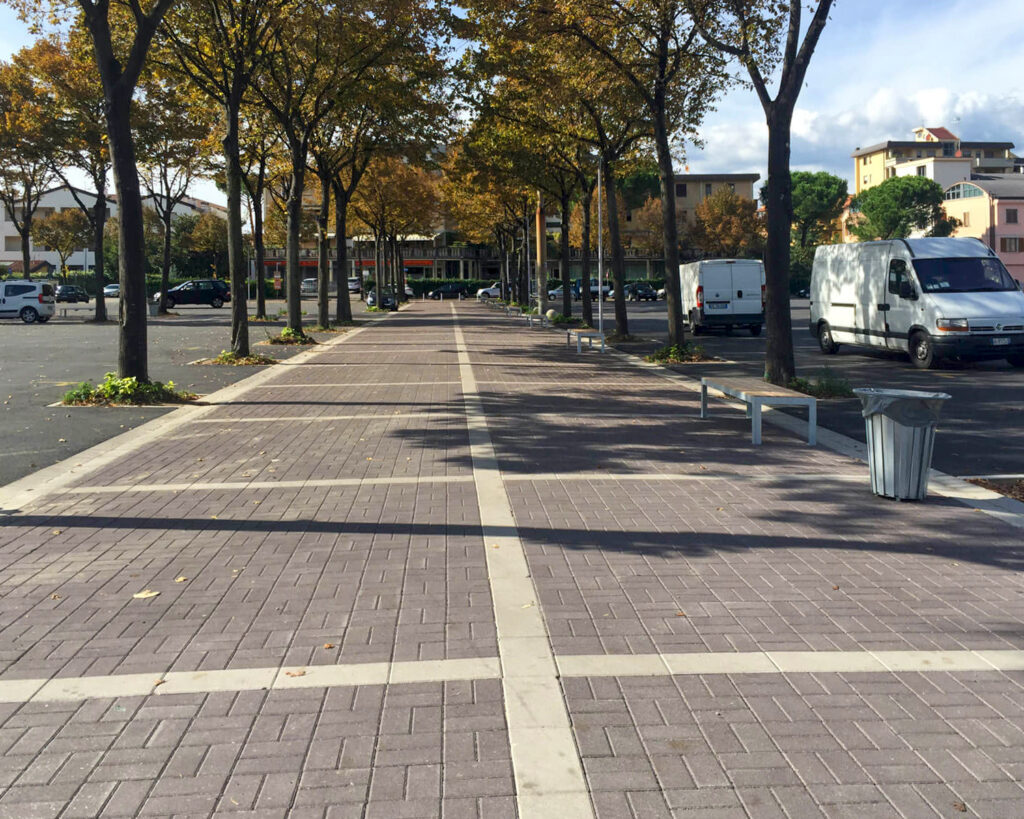 Un’ampia gamma di masselli auto-bloccanti da abbinare a numerose soluzioni per il completamento delle aree interessate, quali piastre e cordoli.
