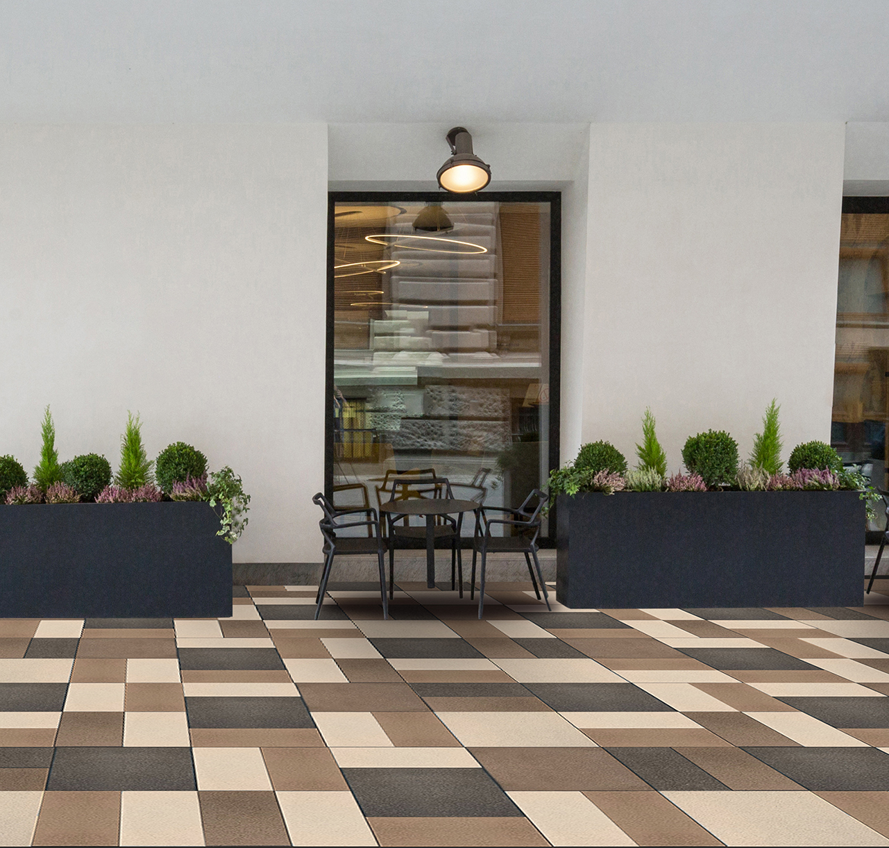 Un’ampia gamma di masselli auto-bloccanti da abbinare a numerose soluzioni per il completamento delle aree, quali piastre e cordoli.