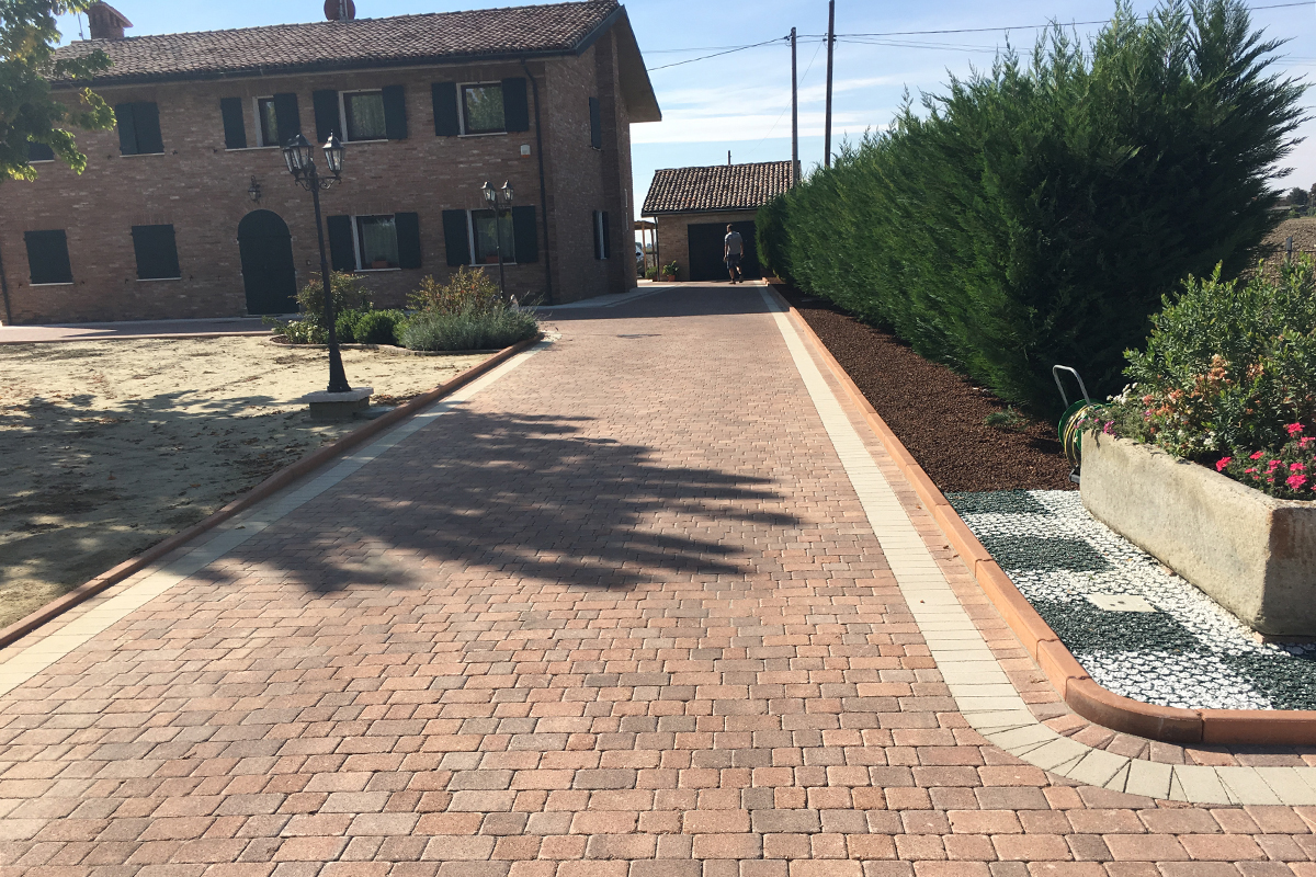 Questi manufatti rappresentano il contenimento ideale per le pavimentazioni in masselli. Si posano su fondazione di calcestruzzo per garantire stabilità, impedire cedimenti del terreno e contenere i masselli perimetrali. Assicurano così una finitura perfetta e mantengono il valore estetico dell’opera.