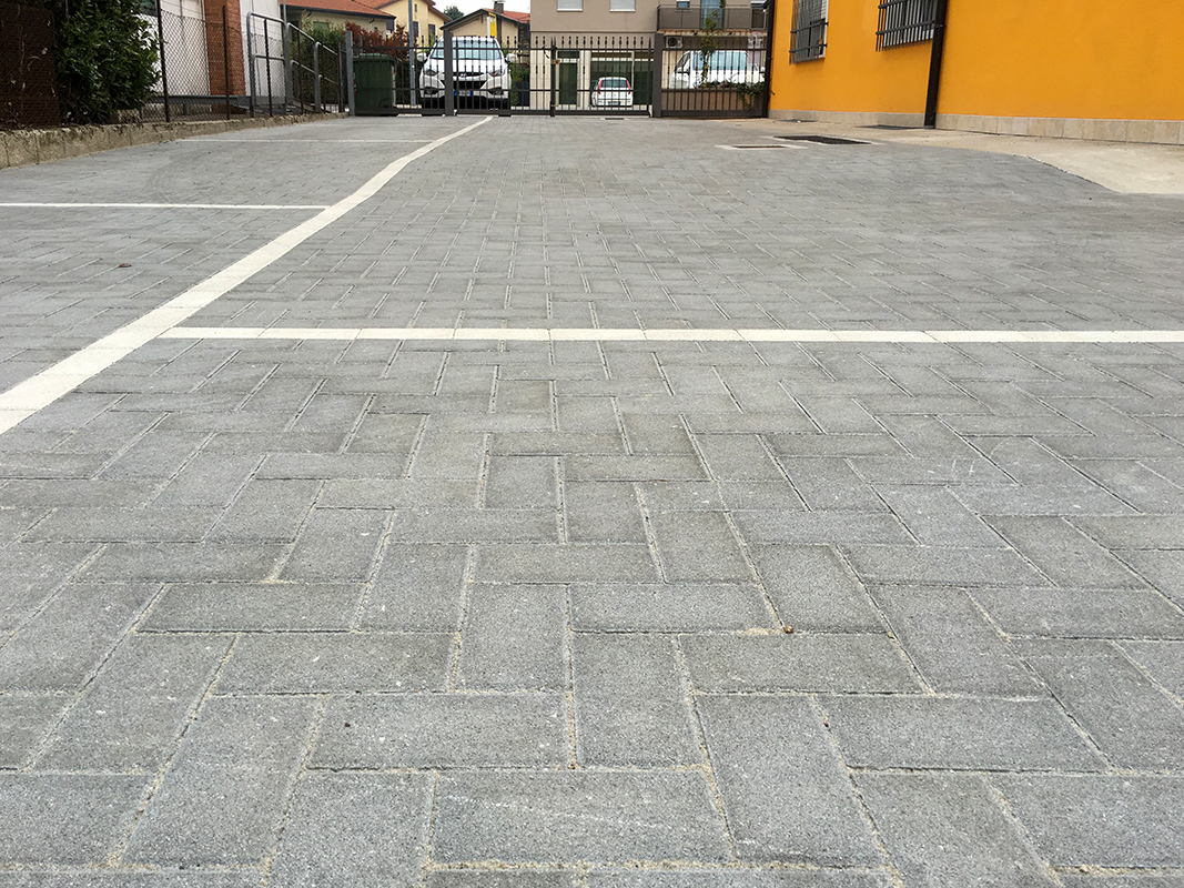 Caratterizzata dalla superficie regolare e dall’ottimale resistenza all’usura; il filtraggio delle acque avviene attraverso la specifica miscela del calcestruzzo di cui il pavimento è costituito e può raggiungere livelli di permeabilità fino al 100%.