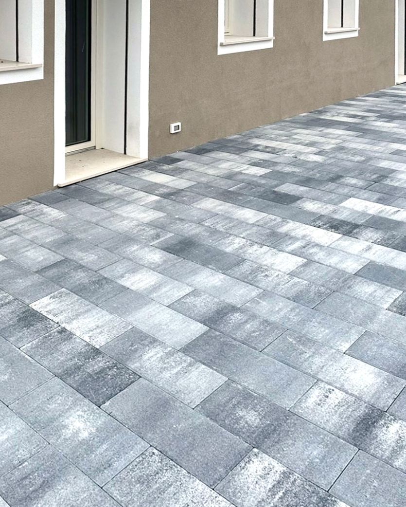 Pavimentazione geometrica adattabile a qualsiasi contesto urbano ed extraurbano; la superfice liscia conferisce alla pavimentazione un carattere regolare e moderno. La specifica miscela calcestruzzo garantisce una permeabilità delle acque piovane del 100%.